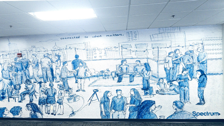 Visitors and employees walking through Spectrum’s Northeast Regional Headquarters in Rochester will see something new across the walls – large-scale murals and framed artwork created by local student artists that interpret connection, community and communication through their own perspective.